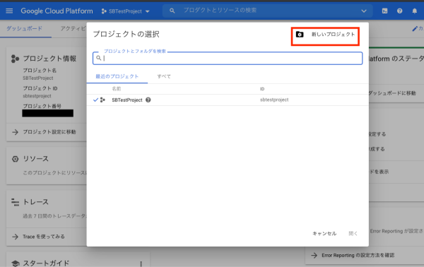 Step1.まず最初に、Google Cloud Platform(GCP)で新しいプロジェクトを作成します。