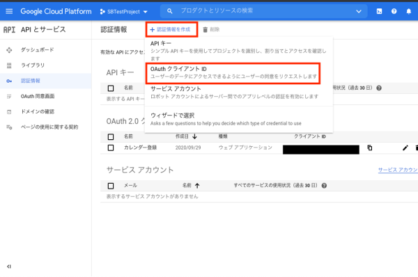 - APIを有効にした後、認証情報を設定し、認証情報を作成します。