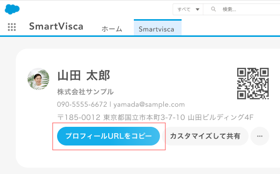 送信者は、SmartViscaにあらかじめ登録しておいた自身のプロフィールからURLをコピーします。