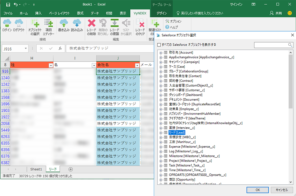 - VyNDEXの活用:ウイングアーク社が提供しているAppExchangeアプリケーションのVyNDEXは使い慣れたExcelを利用して、Salesforceのデータメンテナンスを行える優れもののツールです。社名の表記統一や属性情報の一括付与などを手軽に行うことができるので非常に便利です。