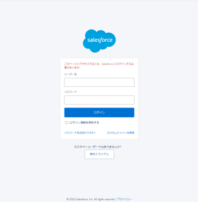 - ユーザ名およびパスワードを入力し Salesforce へログイン