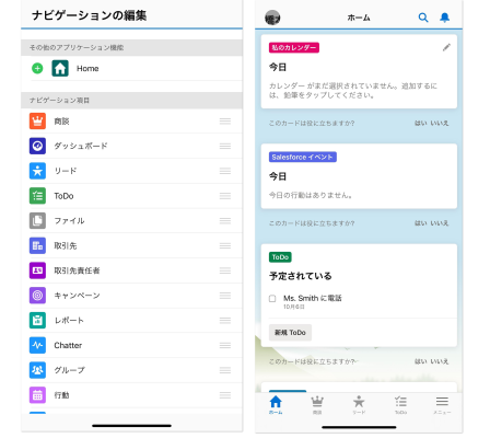 レポート・ダッシュボード・ナレッジ記事を除き、ほぼ全ての標準オブジェクトがスマホでも手軽にデスクトップ版の様に活動を登録したり、顧客情報を確認・入力できます。