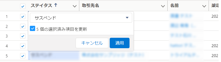 例)取引先責任者のカスタム項目「ステイタス」を一括で更新する