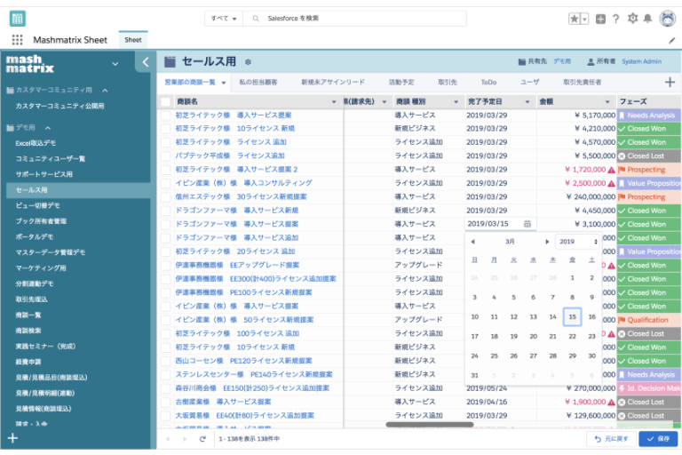 出典元:Mashmatrix Sheet – ExcelのようにSalesforceのデータを閲覧・編集