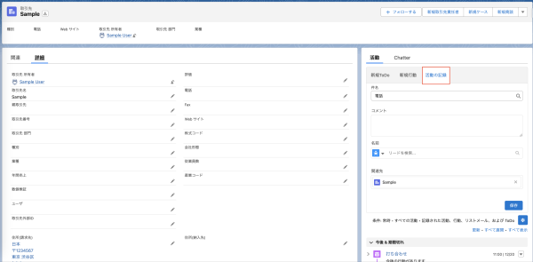 Salesforceで取引先や案件の行動記録・管理は「活動」オブジェクトで管理します。