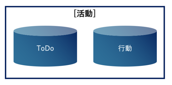 結論から書くと、実態としては「活動」という名称のオブジェクトは存在しておらず、活動オブジェクトはToDoオブジェクトと行動オブジェクトの2つのオブジェクトの総称です。
