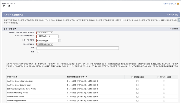 以下は、レコードタイプを新規作成する際の基本的な手順です: