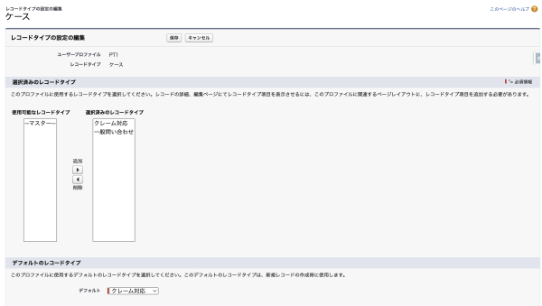 • 利用するプロファイルを選択(どのユーザがこのレコードタイプを使えるか)