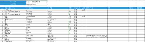 - 各オブジェクトの項目の定義情報をExcel形式で可能 ※複数のオブジェクトの情報を一括で出力することも可能