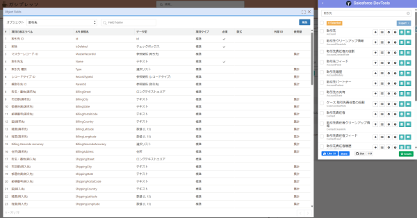 Salesforce DevToolsは開発者向けのツールで、オブジェクトの設定の一覧を出力、データ構造 (ER図)の出力等可能です。