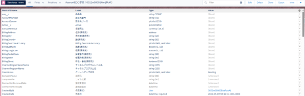 - 各オブジェクトの項目の一覧と値を表示することができます。 項目名でのフィルタも可能で、非表示の項目の値を確認したり、書き換えもできます。