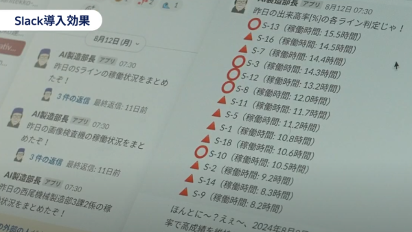 • Slackで製造状況や現場の問題を素早く共有し、連絡にかかる時間と手間を83%削減