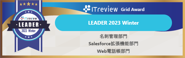 今回の受賞は、Salesforceとのデータ連携によるメリットや、高精度AI-OCRにより名刺を1分で重複なくデジタル化できる点、Web電話帳や人脈可視化、チームコラボレーションなど優れた機能を搭載しながらも年間93,600円(5ユーザーの場合)から利用できるコストパフォーマンス、営業活動の生産性向上といった面で高い評価を得ることができたことによります。