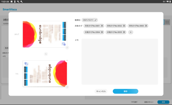 【名刺取り込み時のタグ付与画面(PC)】