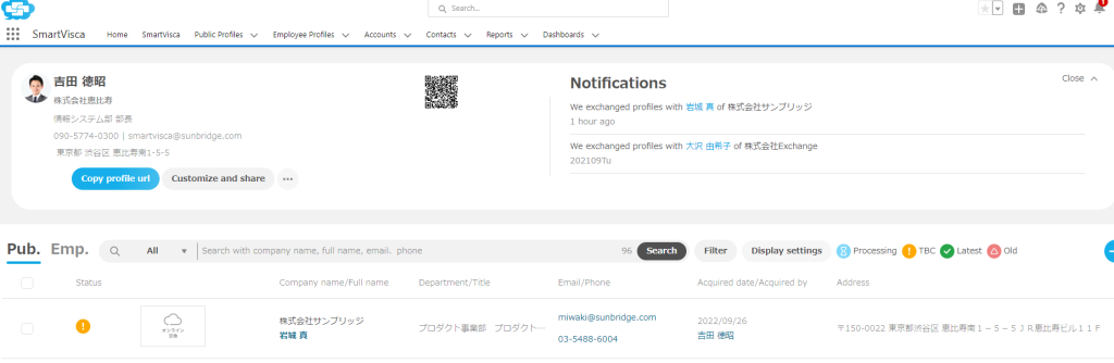 本機能はPC・モバイルに対応し、オンライン名刺交換に関してはSmartViscaをご利用でない方でも手軽な操作でプロフィール交換ができます。