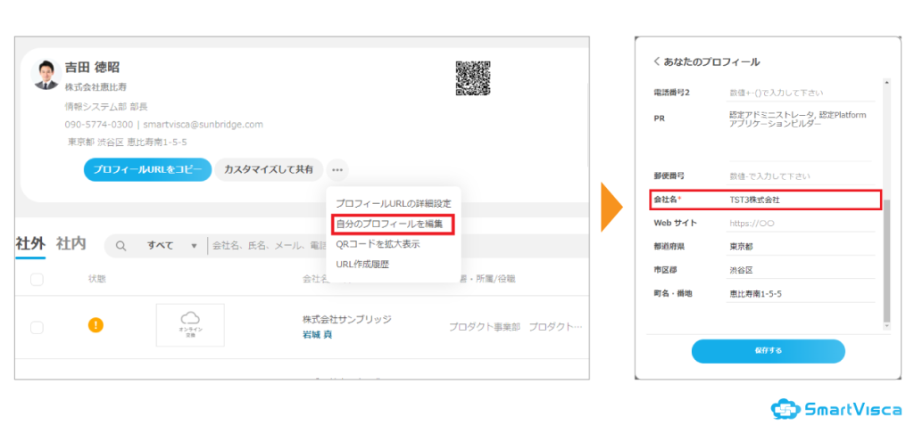 グループ企業でSmartViscaをご利用いただいている企業様から「会社名の欄を親会社名ではなく自社で変更できるようにしたい」といったご要望にお応えし、SmartVisca管理者側で変更許可の設定を行うことでユーザが自身のプロフィール編集画面から会社名項目を任意で設定いただけるようになりました。