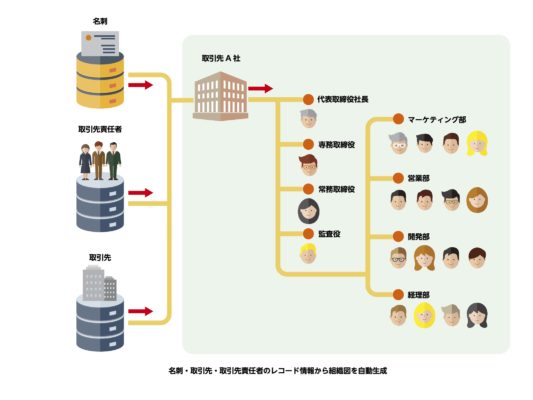 - 取引先・取引先責任者、名刺の情報から組織の階層を構築
