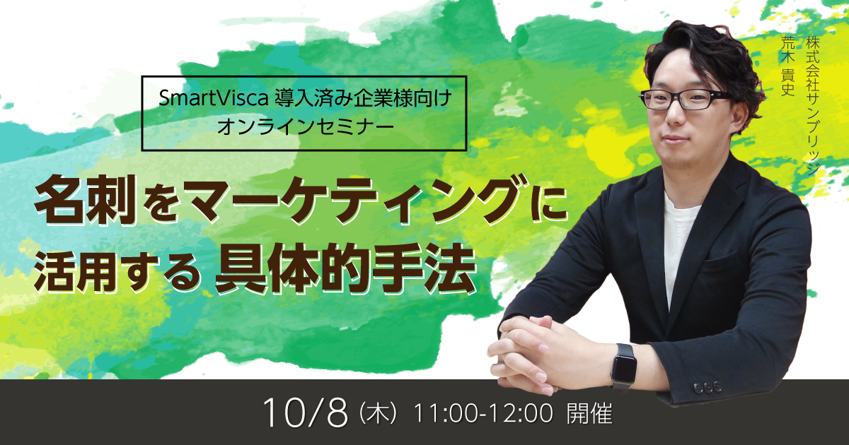 2020年10月8日(木) 11:00 - 12:00【SmartVisca導入済み企業様向け】名刺をマーケティングに活用する具体的手法