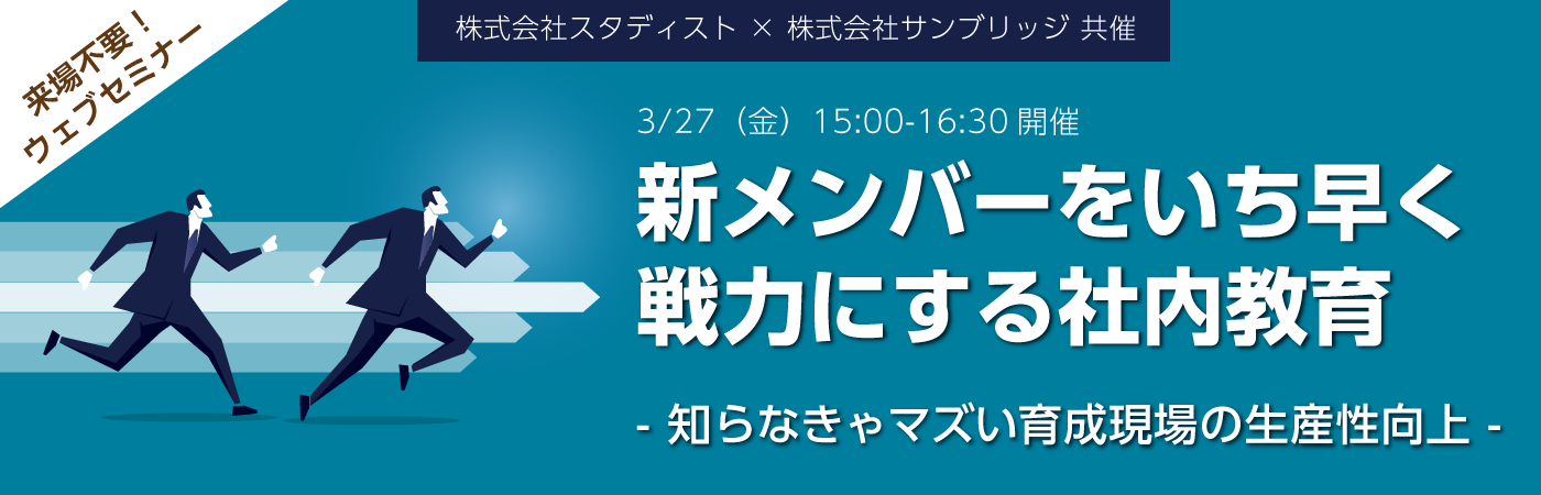 2020年3月27日(金) 15:00-16:30【ウェブセミナー】新メンバーをいち早く戦力にする社内教育
