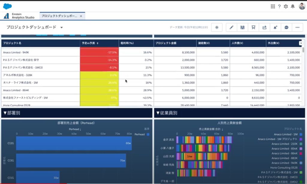工数・稼働・原価・見積などプロジェクトに関わるデータをすべてSalesforceに集約し、プロジェクトごとの利益率を可視化、改善アクションを導き出す