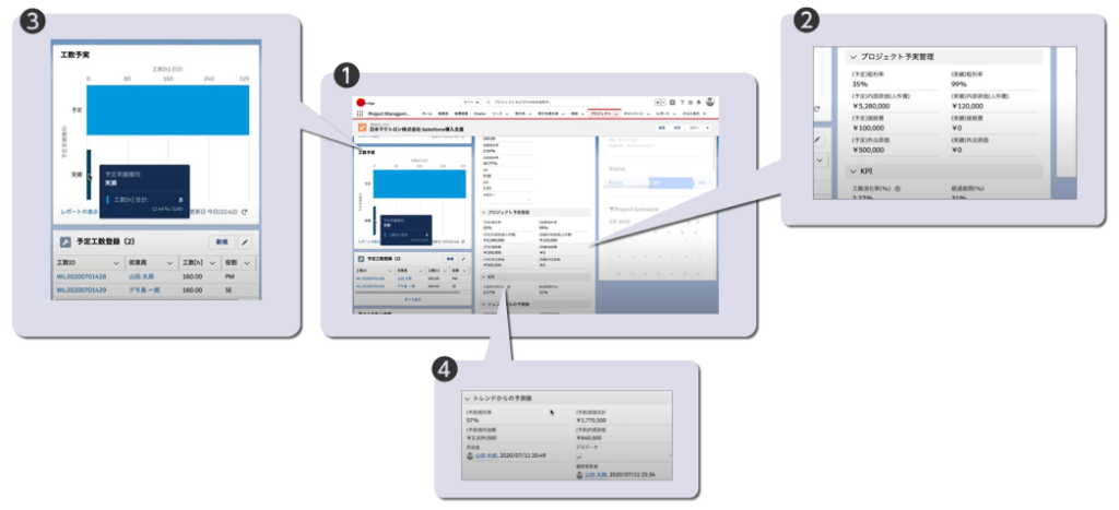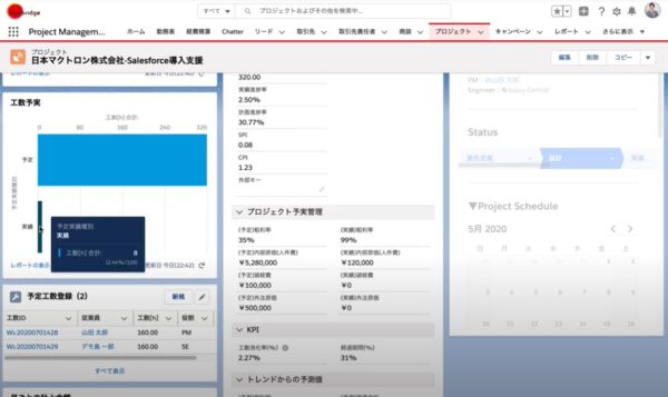 工数・稼働・原価・見積などプロジェクトに関わるデータをすべてSalesforceに集約し複雑な利益率も自動計算で瞬時に把握