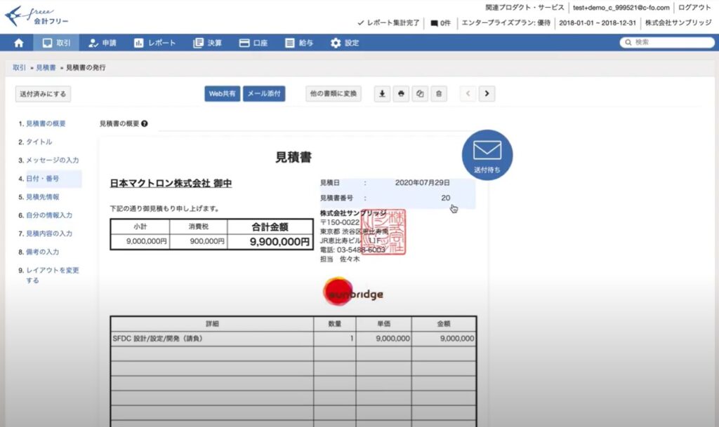| 請求書作成 | プロジェクトの終了日をもとに見積書を発行します。 |